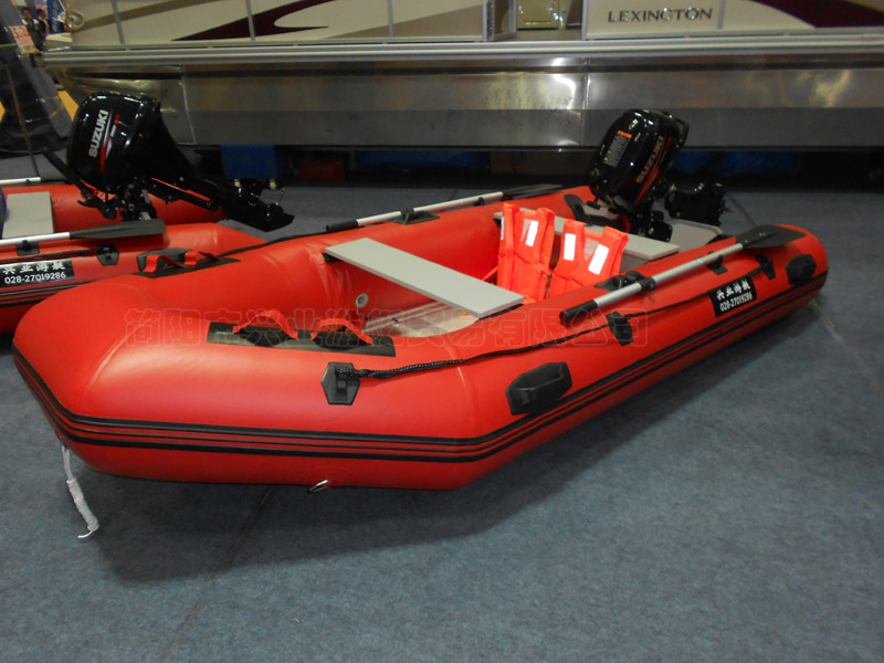 的浮力,保證整艇的安全。同時(shí)橡皮艇具有很高的穩(wěn)定性,由于采用兩側(cè)充氣浮管,艇