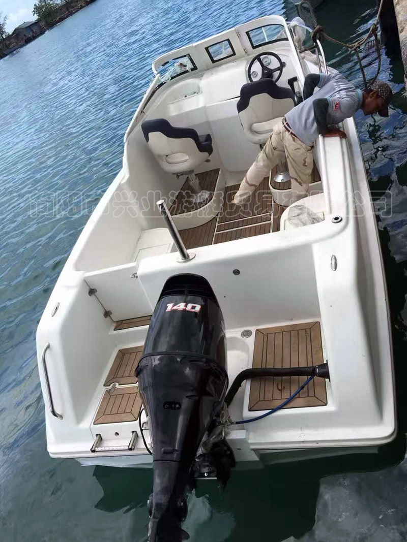 新型鋁合金與玻璃鋼復(fù)合型快艇,重量輕、速度快、穩(wěn)性好。